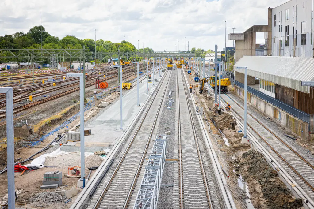 - De bovenleiding is uitgebreid op de sporen richting Harlingen en Sneek, tot aan het Van Harinxmakanaal;