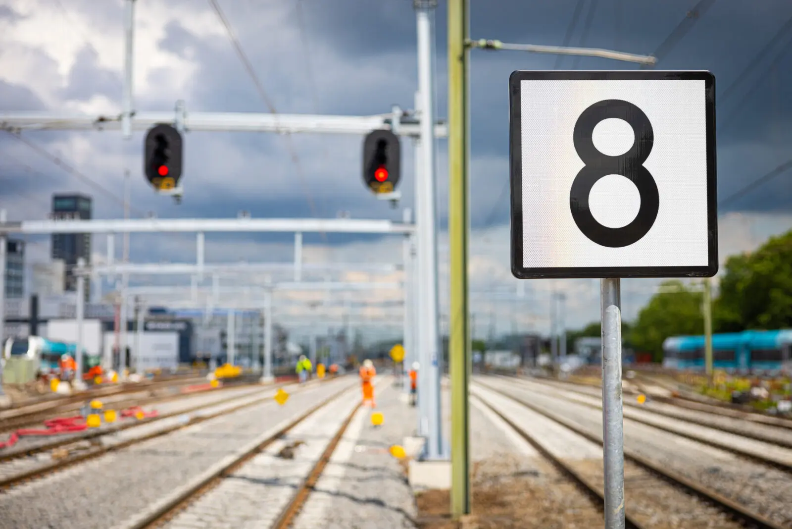 - We realiseerden vier lange service- en opstelsporen met daartussen twee serviceperrons waar vervoerders hun treinen kunnen parkeren en schoonmaken. Daarvoor vernieuwden we vier sporen met wissels, plaatsten we verlichtingsmasten, legden we nieuw kabelwerk, drainage en vulhydranten aan om de treinen te kunnen wassen en spoelen. Voor machinisten maakten we een overpad zodat zij veilig naar hun werkplek kunnen lopen.