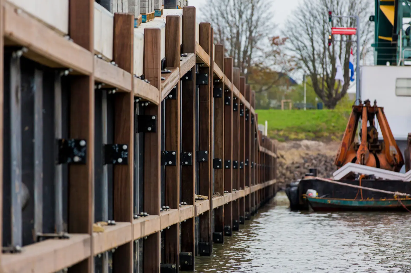 Baggeren, damwandkade en loopbrug
