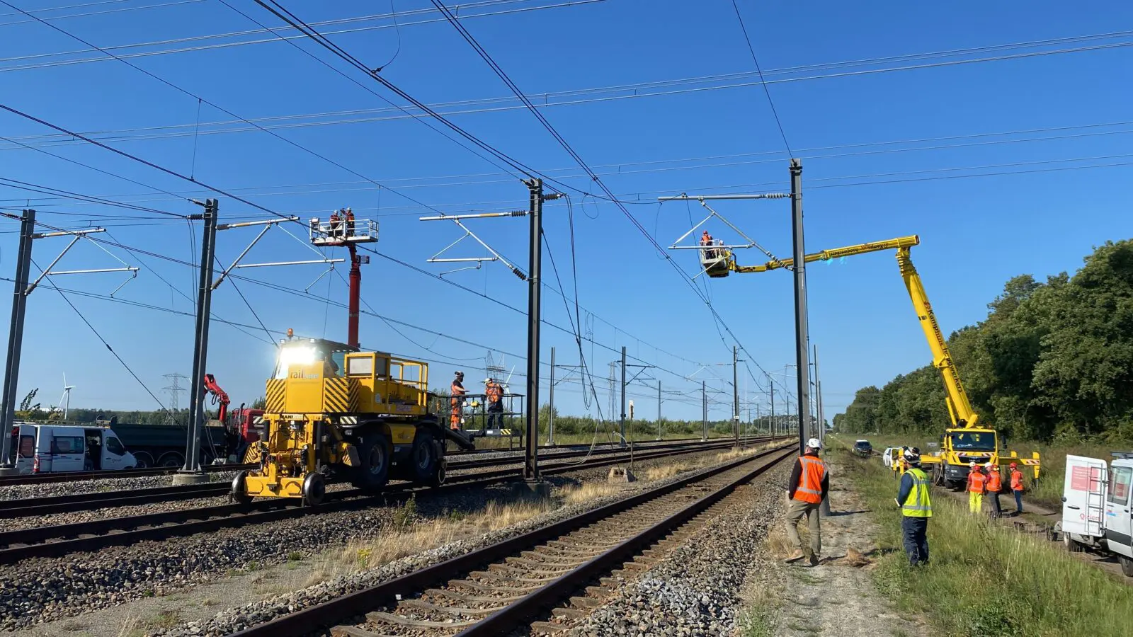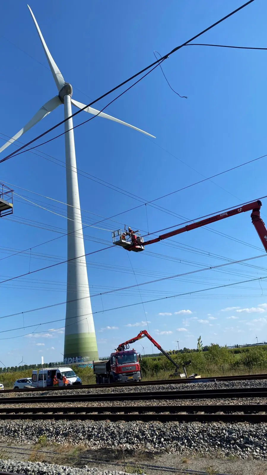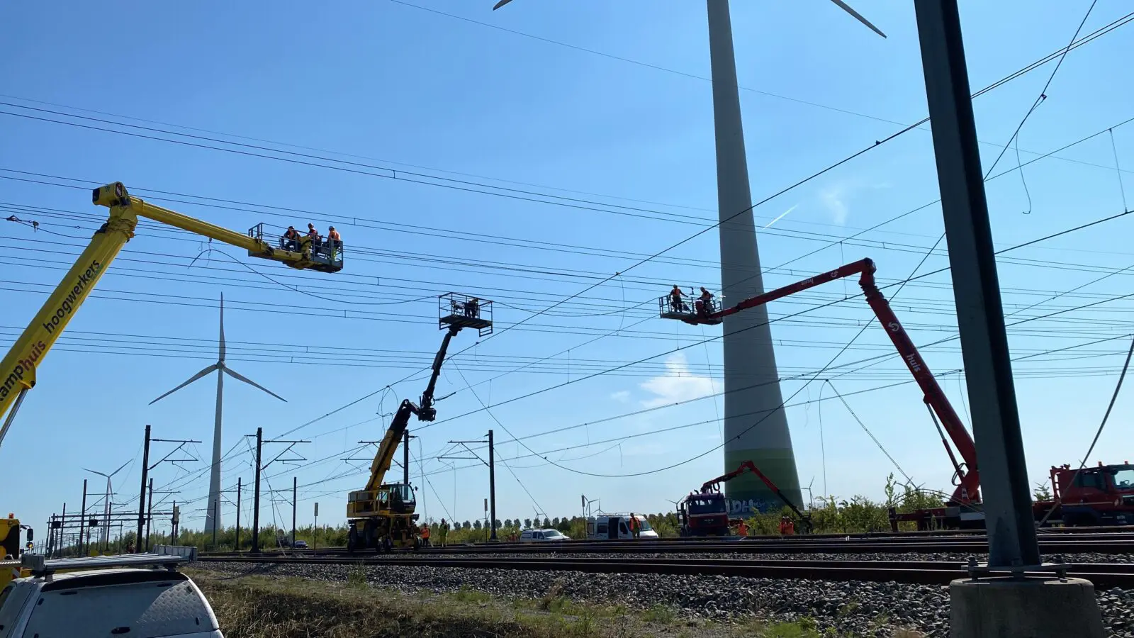 Zaterdag zijn er door een aannemer van TenneT herstelwerkzaamheden verricht aan het hoogspanningstracé. Zo moesten loshangende kabels vervangen worden, zodat onze collega’s op een veilige manier hun werk konden doen. Ook zijn John Voppen (Chief Executive Officer ProRail), Harro Homan (Regio directeur Randstand Noord van ProRail), Maarten Abbenhuis (Managing Director van TenneT) en Harold Verbruggen ter plaatse gekomen om de pers te woord te staan. De video bekijk je op Omroep Flevoland of RTL Nieuws.