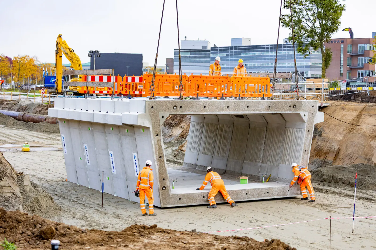 – 24 tunnelelementen geplaatst met een gewicht van 31 ton per stuk;